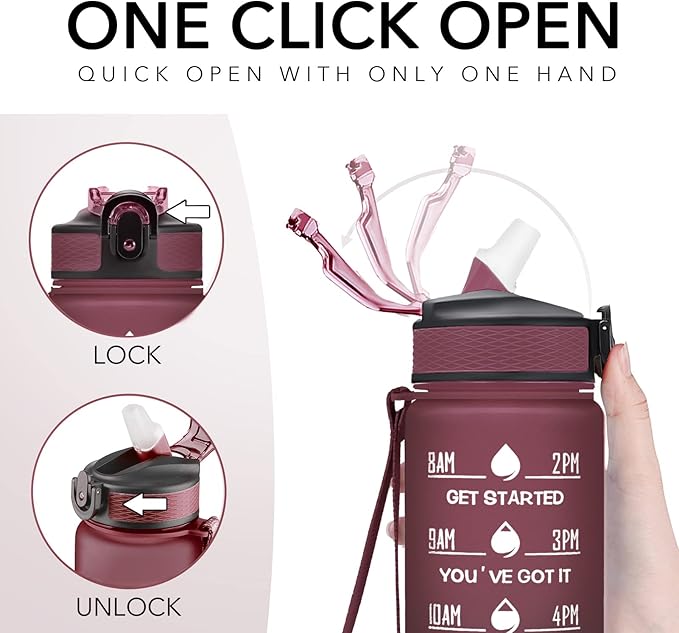 • Motivational Quote and Time Marker: 32 oz water bottle with time markers and inspiring quotes, great for tracking daily water intake and staying hydrated.