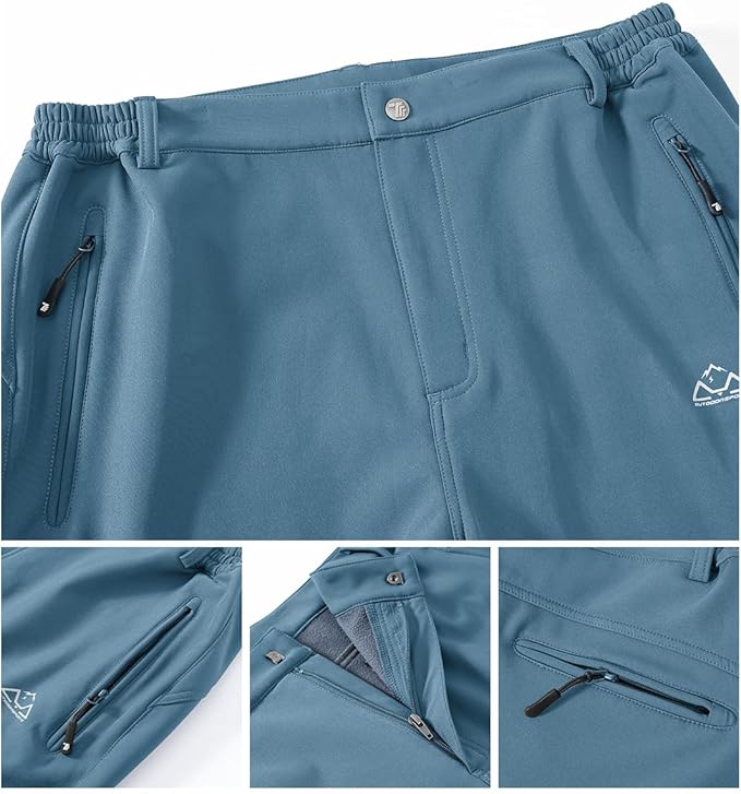 Gopune Men's Snow Ski Waterproof Softshell Pants Outdoor Windproof Warm Hiking Insulated Pants