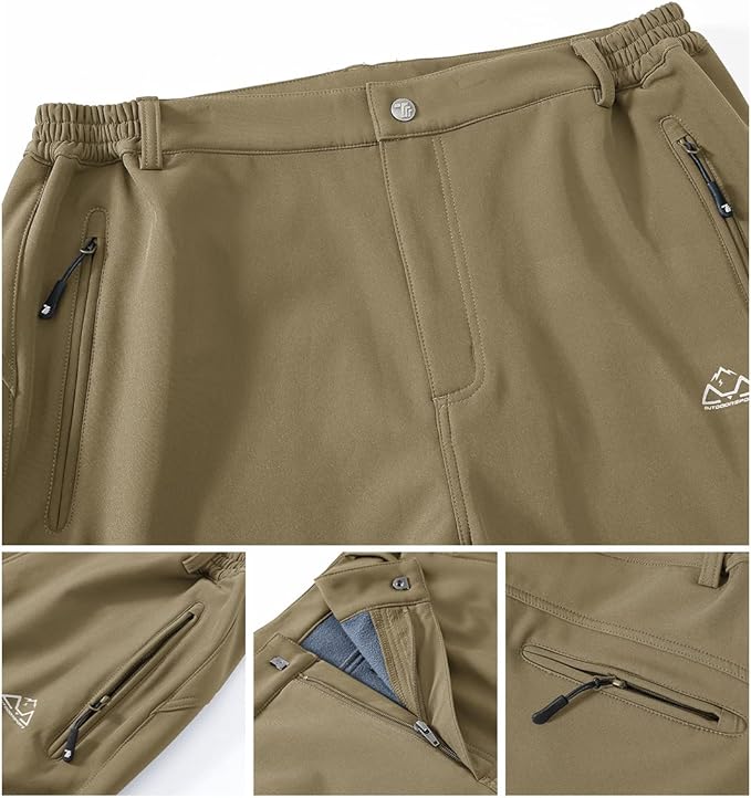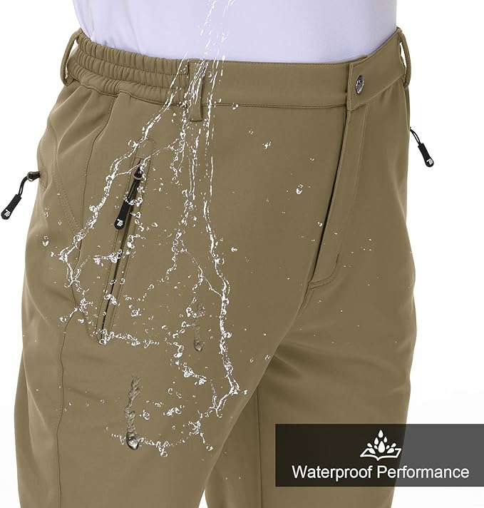 Gopune Men's Snow Ski Waterproof Softshell Pants Outdoor Windproof Warm Hiking Insulated Pants