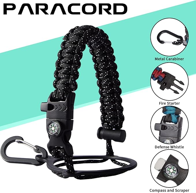 • UNIQUE PARACORD—Perfect Accessories: bright color paracord matches the flask water bottle to give you a youthful vibe while adding a personal style. It comes with a compass, safety loop, metal carabiner, flint, igniter, and whistle to become your survival tool for your wild adventures
