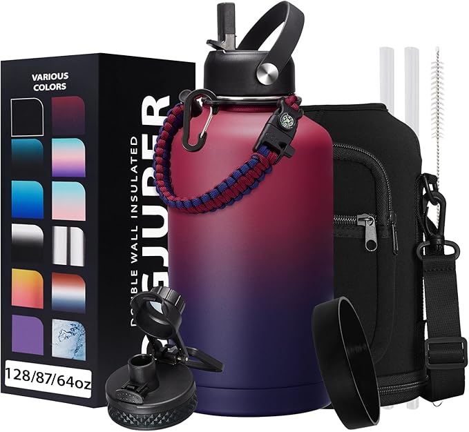 • SUPER JOYFUL COMBO: Buy a 64 oz insulated water bottle, get 9 accessories (2 x lids, 1 x survival paracord, 1 x carrying pouch, 1 x shoulder strap, 1 x protective cup mat, 2 x straws, 1 x straw brush). DIGJUPER provide a lifetime warranty and 7X24H customer service.