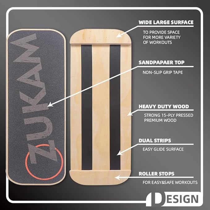 • [What’s included] - The Zukam Balance Board comes with board, roller and workout guide. The board measures 75x28cm , and the roller has a diameter of 11cm and a length of 41.8cm.