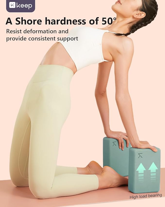 KEEP Yoga Block, High-Density EVA Foam 2 Pack Yoga Block with Non-Slip Textured Surface, Supportive, Lightweight - Ideal for Yoga, Pilates, and Stretching Exercises