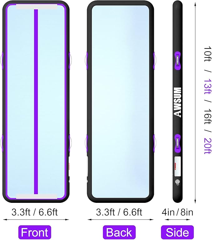 AWSUM Inflatable Air Gymnastics Mat 10ft/13ft/16ft/20ft/23ft Training mat 4/8 inches Thick tumbling mat with Electric Pump for Home/Gym/Outdoor