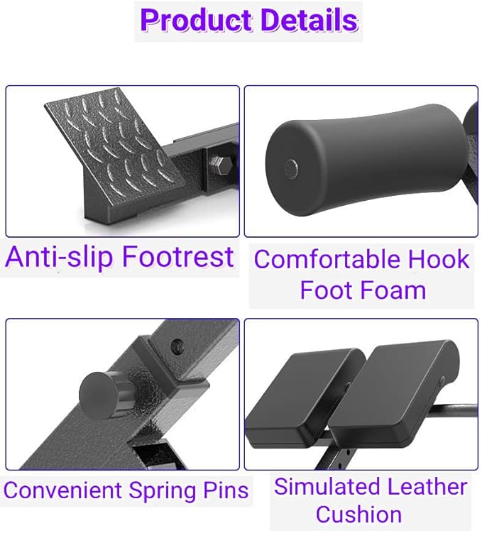 • 【Multifunctional Back Extension Machine】: This is a full-body workout equipment, mainly for the lower back, lumbar abdomen, core, glutes, hips and thighs. The integrated DIP bar allows the strength to focus on your upper body.