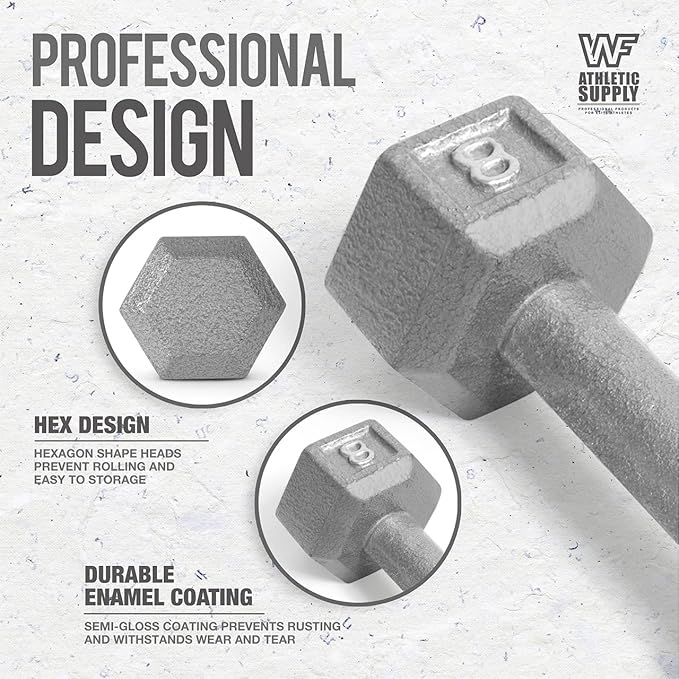 • ?‘Š Special Features ??Original Hex Shaped heads prevent dumbbells from rolling. The medium depth knurling on the handle provides essential grip and security during use and easy to storage. Semi-gloss coating is a durable and effective finish, prevents rusting and complements the décor of any gym.