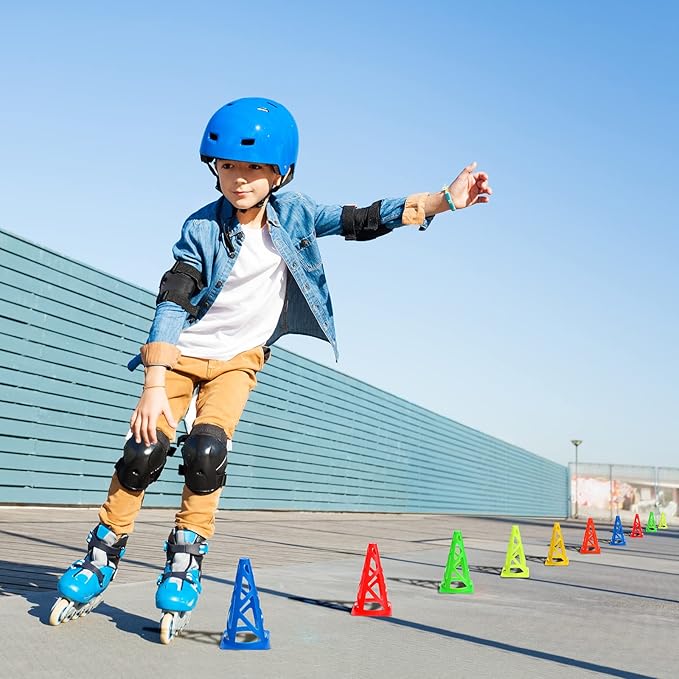 • Package Included: you will get 60 pieces of agility cones in 6 bright colors for catching eyes (red, yellow, blue, green, orange, fluorescent), 10 pieces for each color; The enough quantity could satisfy your need of sports training and improve your footwork