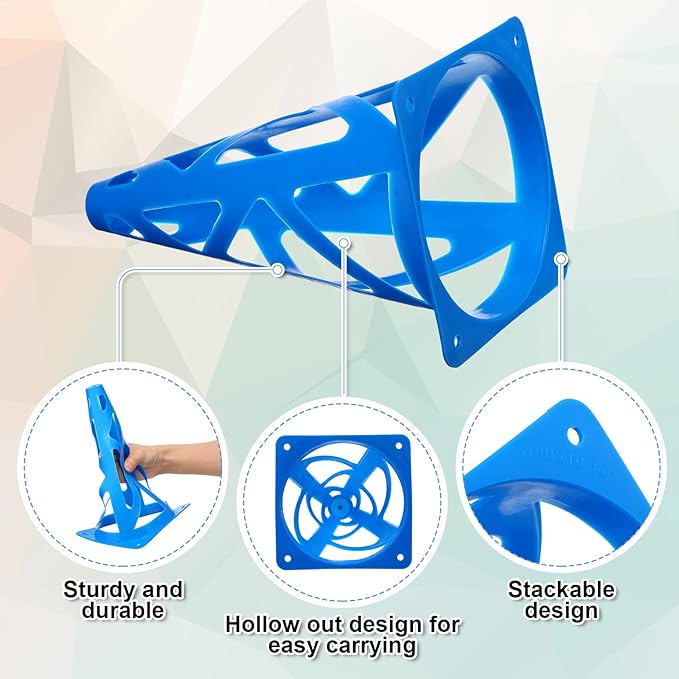 • Ergonomic Design: the training marker cone is 9 inches in height, the hollow design is conducive to carrying and reducing weight; It can be stacked for easy storage and transportation without taking up your much space