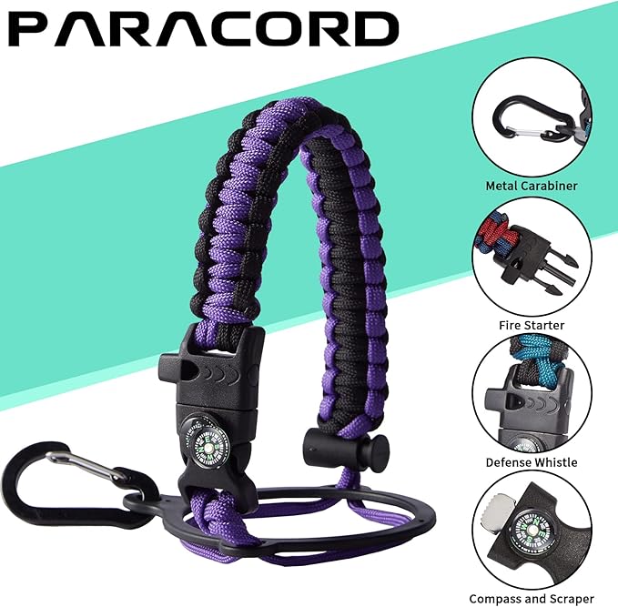 • UNIQUE PARACORD—Perfect Accessories: bright color paracord matches the flask water bottle to give you a youthful vibe while adding a personal style. It comes with a compass, safety loop, metal carabiner, flint, igniter, and whistle to become your survival tool for your wild adventures