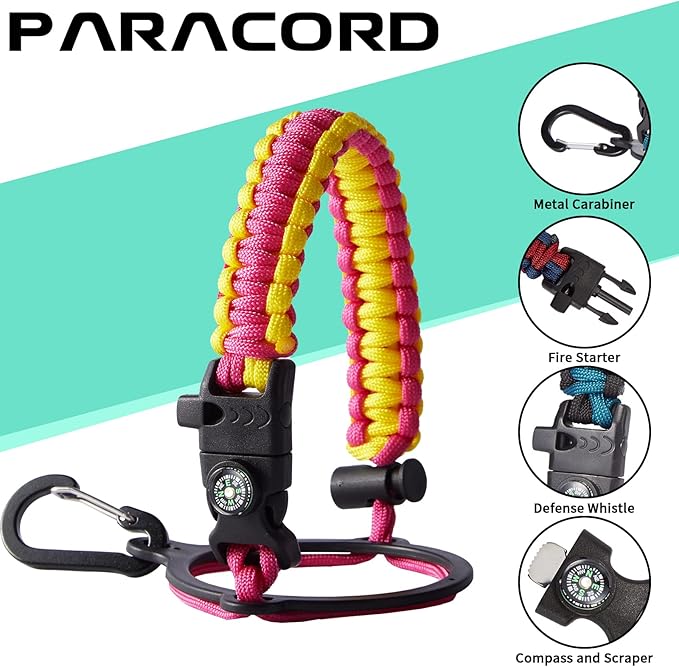 • UNIQUE PARACORD—Perfect Accessories: bright color paracord matches the flask water bottle to give you a youthful vibe while adding a personal style. It comes with a compass, safety loop, metal carabiner, flint, igniter, and whistle to become your survival tool for your wild adventures