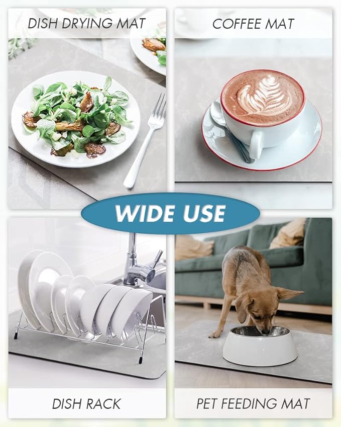 • SUPER ABSORBENT: Super absorbent soft diatomite can suck up water splashes and duping coffee instantly without messing up your countertop