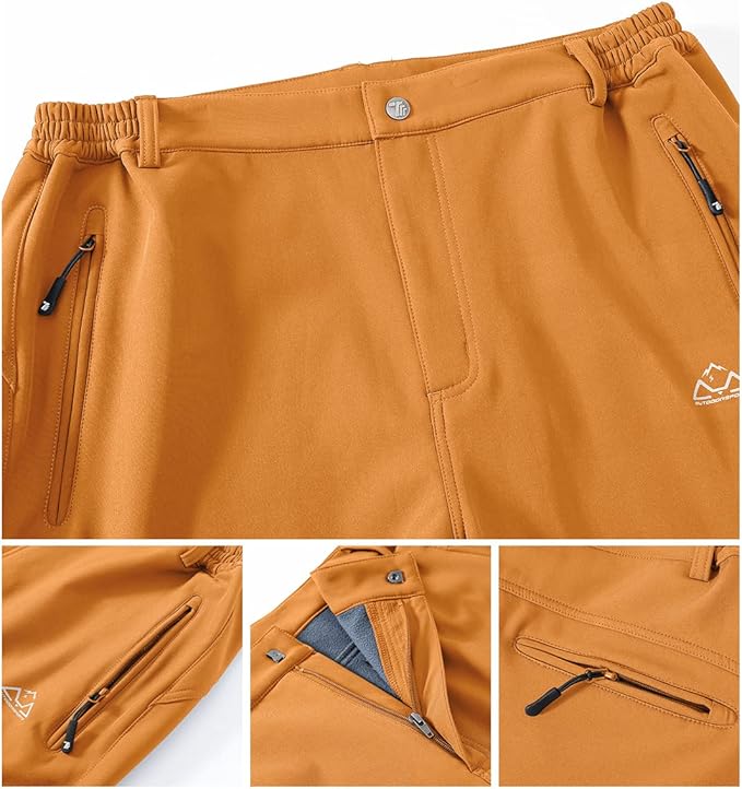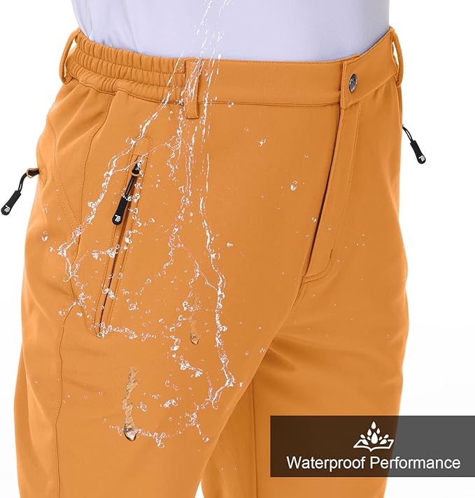 Gopune Men's Snow Ski Waterproof Softshell Pants Outdoor Windproof Warm Hiking Insulated Pants