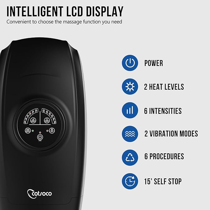 • OPTIONAL VIBRATION & HEAT SOOTHING: The Cotsoco Thermal Compression Hand Massager is available in pulsed and continuous vibration modes, as well as optional heat, which helps keep hands warm and moist, improves blood circulation, and reduces hand discomfort and cold palms.