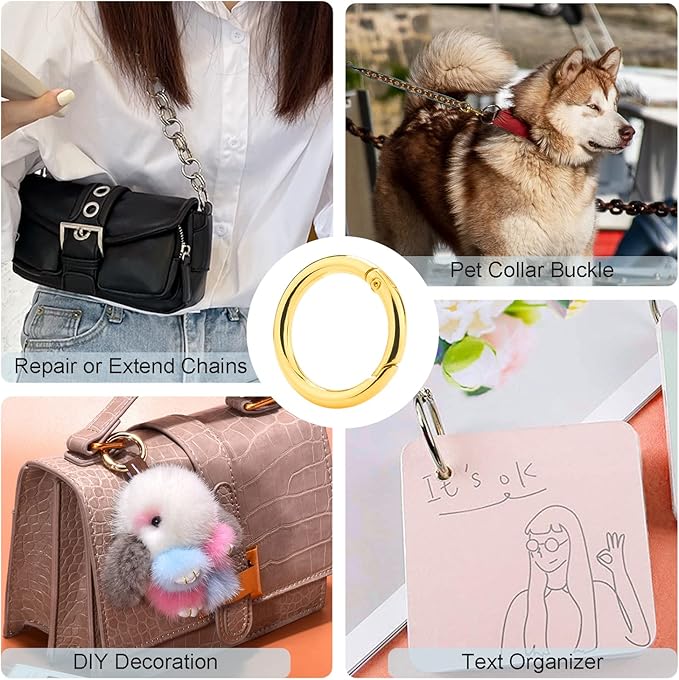 • Ease of use: Spring O ring keychain clip design, simple to use and easy to open and close, can be connected and released quickly, round trigger snap ring perfect for an extend for your handbags or a replacement ring for straps, spring o ring are an indispensable quality accessory for repair items