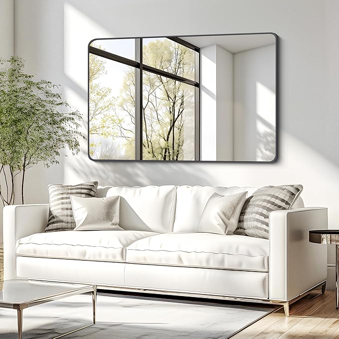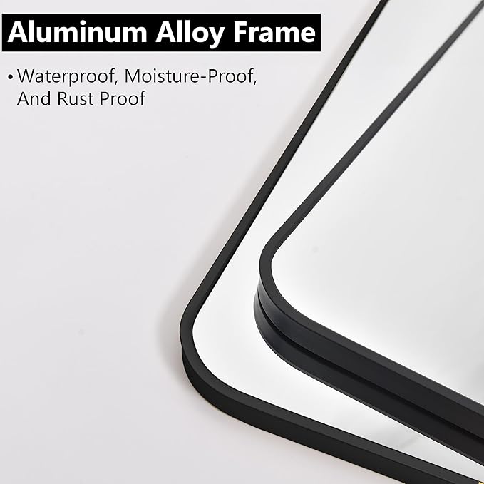 • Excellent Design: Our rounded rectangular wall mirror is designed with a kind of fashion and modern industrial style. The frame is made of brushed black metal with an angled design to protect the mirror. Besides, the black mirror is anti-stripping, anti-cracking and anti-water,and it is safer and more premium than traditional recessed frames.