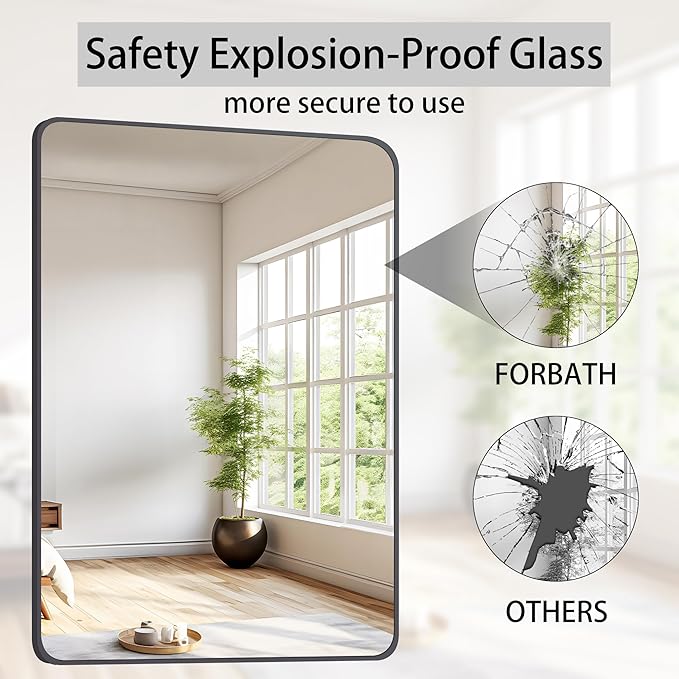 • High-quality material: With premium glass, bathroom mirror is anti-distortion, which is perfect in reflection. Carefully designed packaging ensures that the rounded corner mirrors arrive safely.