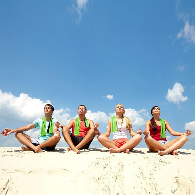 • MULTIPURPOSE SPORTS TOWEL: You may use your cooling neck wraps in many different ways! The 40''x12'' size gives you the chance to make it the perfect neck cooler, ice cooling scarf, instant heat relief bandana and cold headband. Whether you are at work, at the beach, at the gym, doing pilates at home or at camping, this cooling towel is the summer essential accessory for you.
