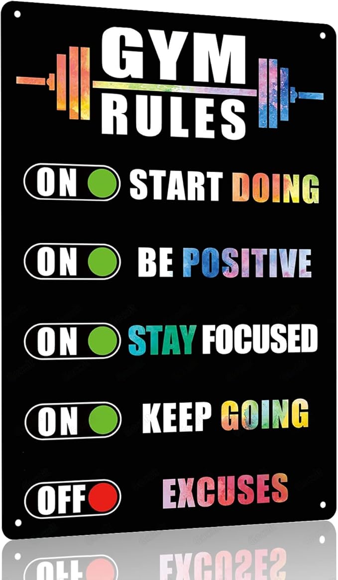 Gocolt Home Gym Rules Signs Workout Motivational Quote Hanging Sign - Exercise Poster - Gym Room Sign for Men's Cave Interior Home Art Metal Tin Wall Decor 8x12 Inches