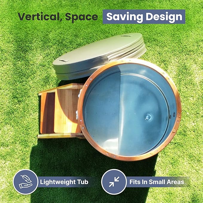 • [Easy to Use]: Ice bath ships fully assembled, so you can begin enjoying cold plunge therapy right away; a water outlet is included inside the ice bath; simply press down on the outlet to drain the water; red cedar steps make it easy to get in and out of the tub; insulated cover helps keep water cool and clean in-between uses