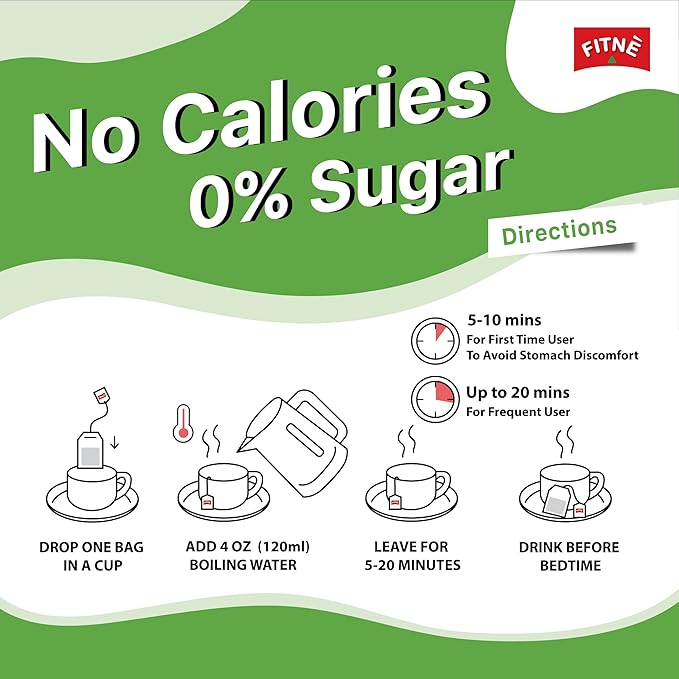 • GREEN TEA - FITNE herbal infusion tea made from 100% herbs of garcinia, senna leaves and pods. Fresh, natural and aromatic tea for green tea lover. Night cleanse tea with Double-Chamber tea bag ensure quicker and more effective diffusion.