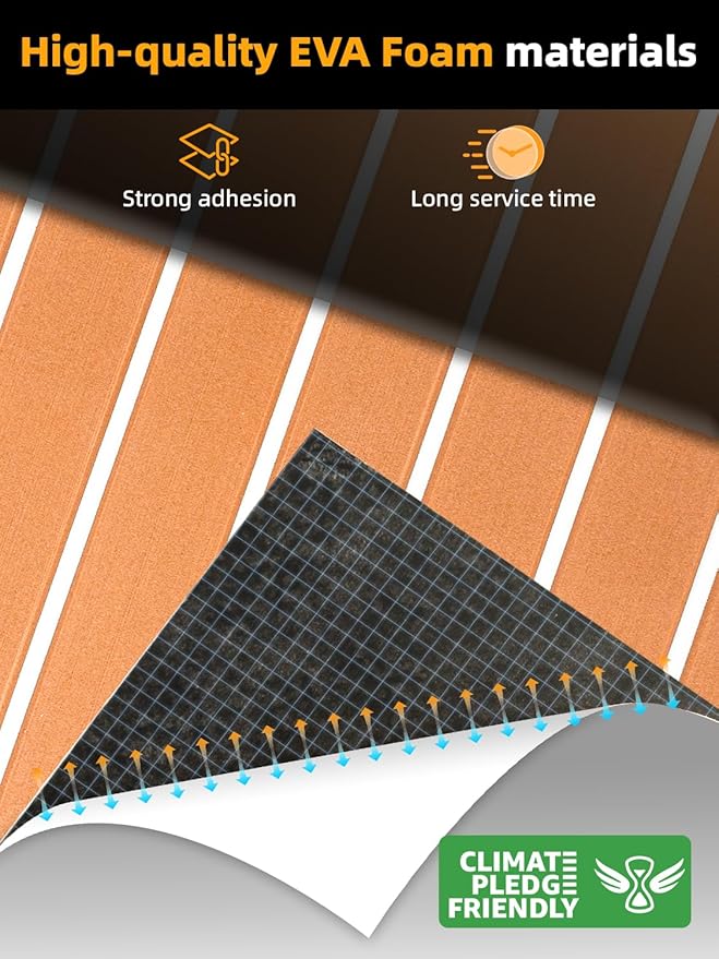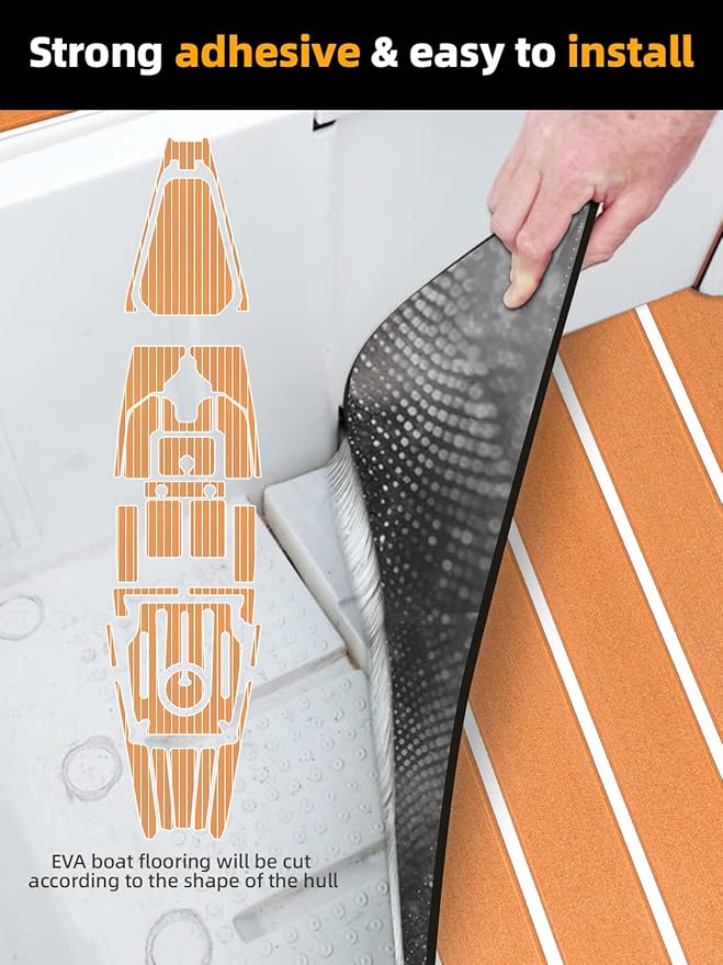 • Wide Application - Very nice faux teak boat flooring, different colorful patterns available. They are perfectly used for Motorboat, Jon Boat, RV Yacht Kayak, Surfboard, Swimming Pool, Garden flooring and other boat decking