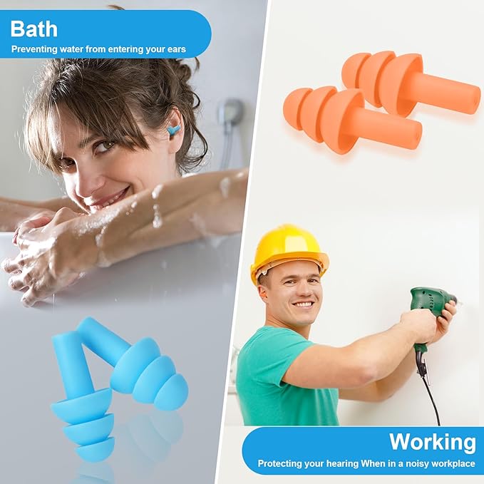 • Triple Protection - 3 layer design improves sealing ability and comfort, effectively reduces noise and has high water resistance. These earplugs are very suitable for sleeping, swimming, shooting, studying, noisy work environments, concerts, motorcycles, traveling by plane and loud events.