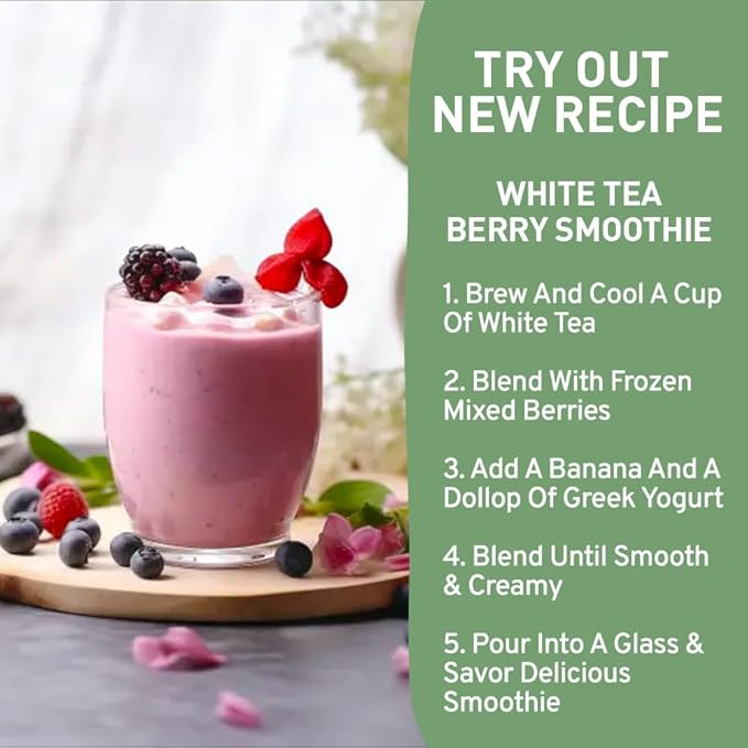 • FLORAL, LIGHT & SMOOTH WHITE TEA - Experience the floral and smooth flavors of White tea, hand-picked from high-elevated gardens in China, it offers a light and fresh taste with low caffeine content, thanks to its unopened buds and tender tips, every sip embodies the essence of purity and refinement, making it a sublime choice for those who appreciate the finer nuances of tea.