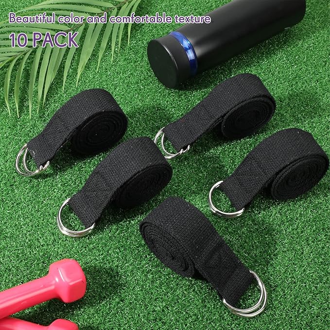 Jerify 10 Pcs Yoga Strap for Stretching Bulk 6ft Exercise Stretch Band with Metal D Ring Adjustable Pilates Non Elastic Yoga Stretch Belt for Women Men Physical Fitness Gym Workout Dance