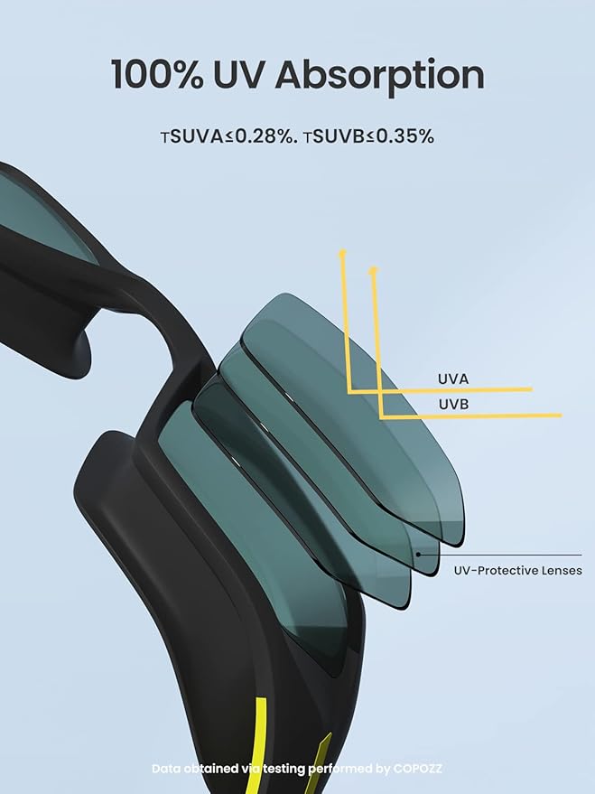 • [Superior UV Protection]: Our adult swim goggles provide 100% UV absorption, with a τSUVA≤0.28% and a τSUVB≤0.35%. They provide excellent protection against harmful sun rays, making them ideal for outdoor swimming.