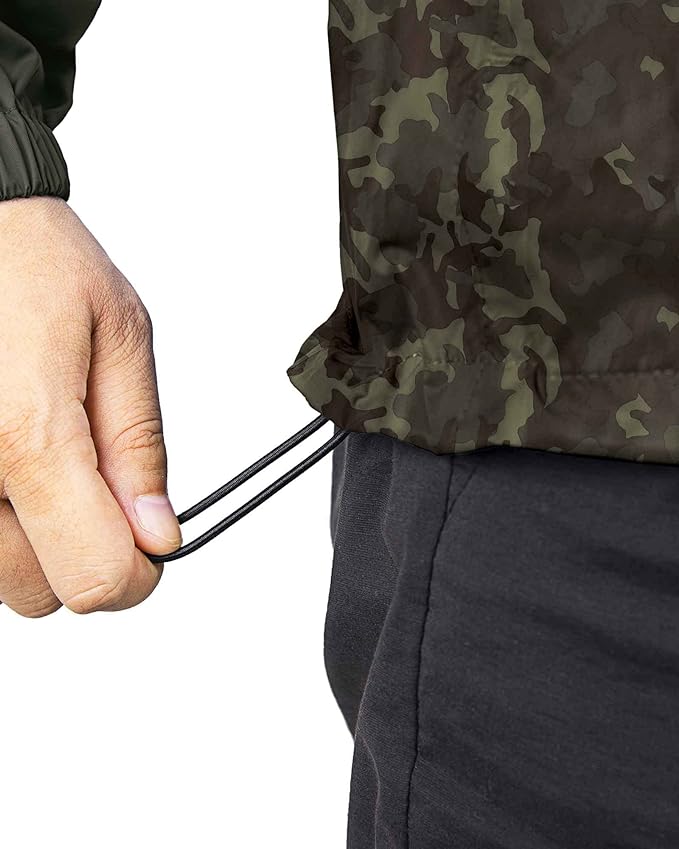 • ?�Unique Design?‘Lightweight lite rain jacket elastic cuffs prevent the rain drops to the cuffs; Adjustable drawcord hood to prevent yourself from being wet; The hem contains elastic rope for warmth and keep you dry. Suitable for casual wear, outdoor sports, outdoor work, traveling, cycling, hiking, climbing, fishing, camping, hunting.
