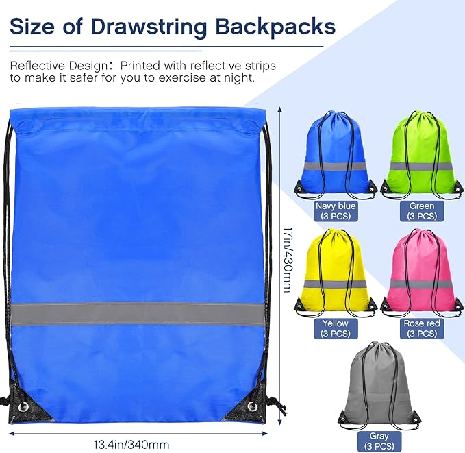 • Lightweight and Flexible: the bands for working out are mainly made of quality TEP, stretchy and no smell, not easy to fade or break while exercising; The reflective drawstring bags are mainly made of soft polyester, easy to hold your small items, which can accompany you for a long time