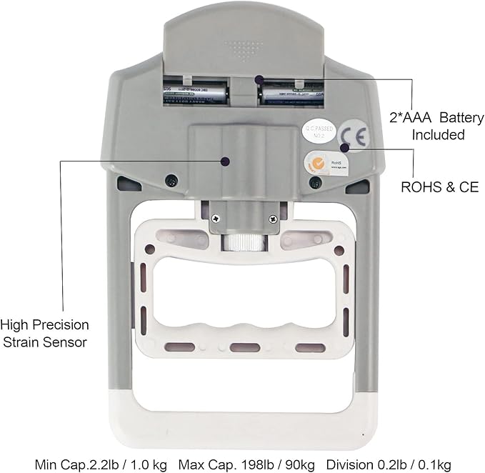 • [Accurate Measurement] - This hand grip strength tester is equipped with a high-precision strain gauge sensor for accurately measuring grip strength up to 198 pounds with the division of 0.2lbs / 0.1kgs. 2* AAA batteries included;