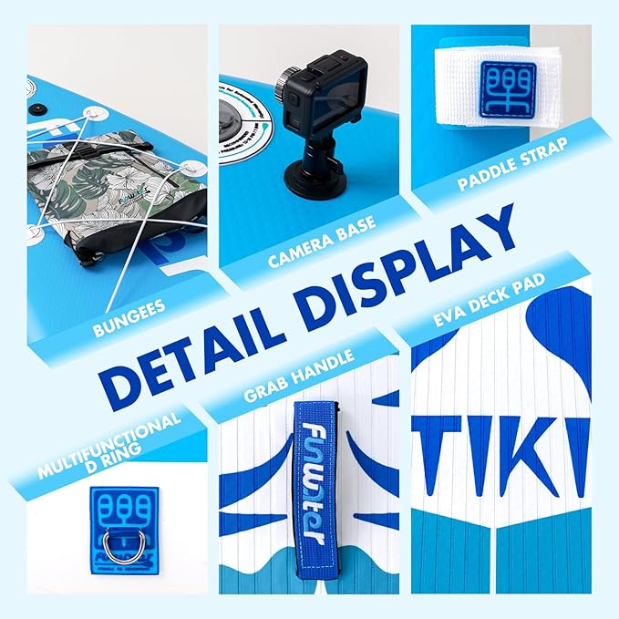 • 【Paddleboard Size】The FunWater paddleboard is designed to be 10' in length, 33" in width and 6" in thickness with great balance and stability, ideal for children, adults, beginners and experienced surfers, you can surf, paddle, yoga and fish on it with confidence and have a wonderful experience.