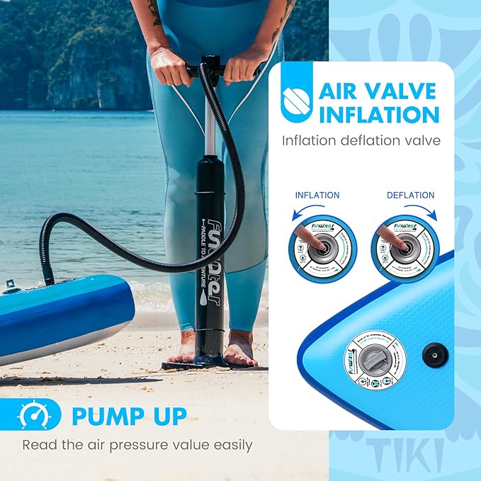 • 【Rich Paddleboard Accessories】Every paddleboard is equipped with manual pump, fins, cell phone waterproof bag, paddleboard backpack, coil foot leash, single paddle, you will get a complete and colorful water experience.