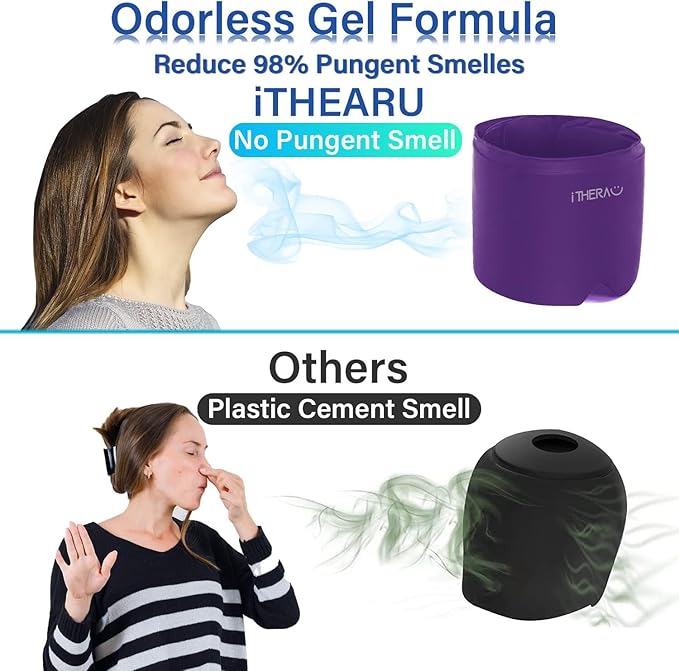 • Updated Odorless Material:Different from other old migraine relief cap, our headache relief hat made with cutting-edge material and expert-grade gel, it's already cool without even frozen. Non-toxic and with no smell, thick solid gel stays cold longer, remains smooth and pliable when frozen, very cozy to wear. Stretchable gel conforms closely to all different head shape, gives tight compression to the head, provides more cold penetration to relieve headache, migraine and tension