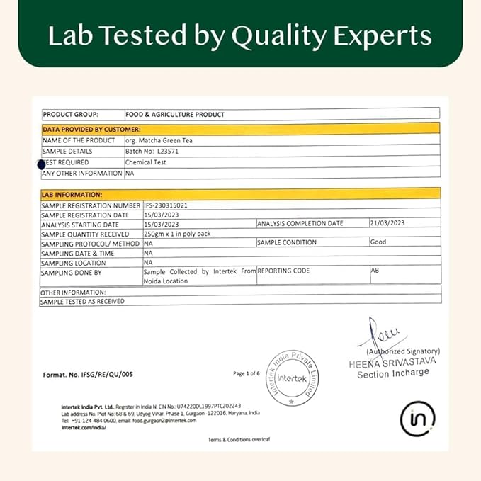 • NON-GMO VERIFIED MATCHA - Experience the finest in ethical Matcha with our Non-GMO verified Matcha green tea that has a vibrant green color signifying freshness and purity. The meticulous cultivation process brings out a smooth, velvety texture with delicate sweetness and subtle undertones, making it a delightful experience.
