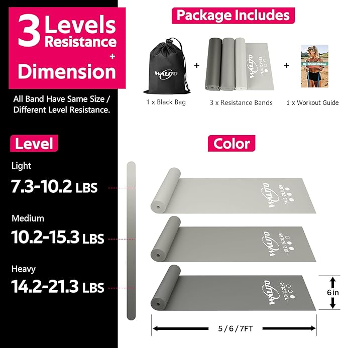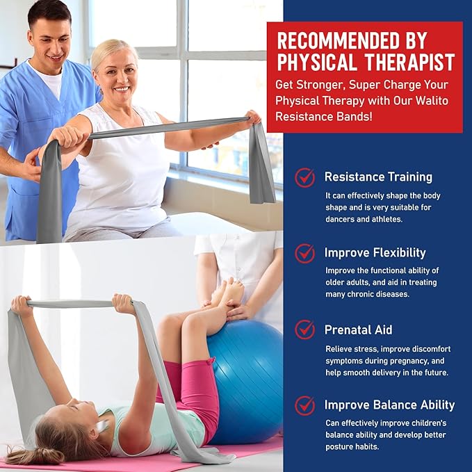 WALITO Resistance Bands for Working Out, Exercise Bands for Women and Men, Workout Bands for Physical Therapy, Stretch, Recovery, Pilates, Rehab, Strength Training and Home Gym