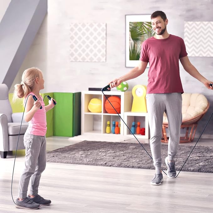 • Durable & Adjustable Rope / / This jump rope is made of steel wires that are coated with strong PVC material, making it durable even after a long time exercising. Its adjustable length design enables you to customize the length according to your needs, making it suitable for everyone, no matter for kids or adults.