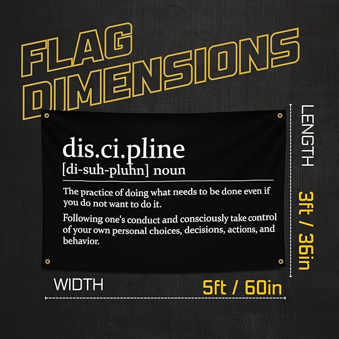 • EASY HANGING: With four brass grommets, our motivational flag offers versatile hanging options. Securely hang it on any wall, whether it's your garage, bedroom, or home gym. These grommets ensure the flag stays strong and steadfast, adding style and motivation to your surroundings.