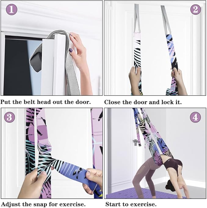 • 1)IMPROVE YOUR HEALTH - Door Flexibility & Stretching Leg Strap increase your flexibility and stretch yourself easier and safer. The stretch strap easily to use and with soft cushions takes care of your waist, hands and feet, allows you to improve your stretching or yoga skills and makes you feel and look younger