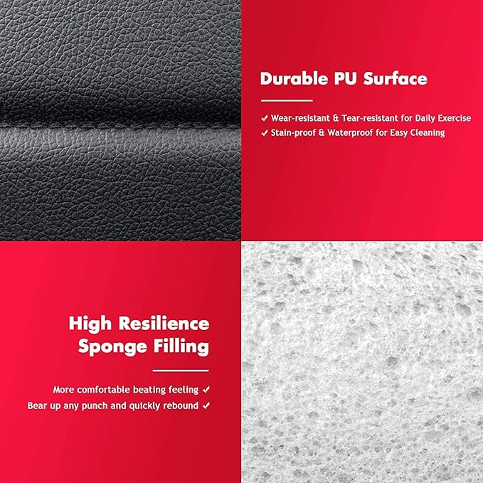 • 【Durable and Anti-Burst Sandbag】 Sandbags using high-quality anti-burst PU, smooth surface, soft and have good elasticity. The full Internal filling makes the sandbag super resistant to any punch, not easy to become deformed.