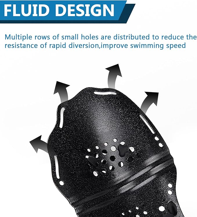• [EXTREMELY COMFORTABLE] The hand paddles are made of high quality PC material, light weight, not easy to bend, with many drainage holes and waterways, the smooth design can push more water and create a smooth pulling trajectory, reduce shoulder burden and fatigue, let you have a better feeling of the water.