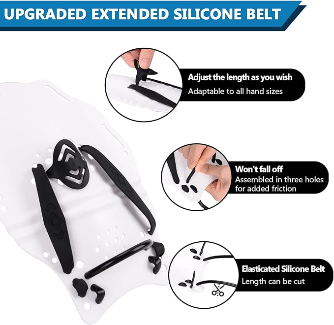 • [OPTIMISED AND IMPROVED] The updated design of the swim paddle hand have been lengthened and we are giving away 2 pairs of long and short wrist straps for you to choose from, eliminating the problem of the wrist straps falling off during swimming and greatly increasing the resistance of swimming.
