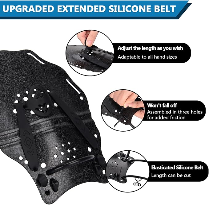 • [OPTIMISED AND IMPROVED] The updated design of the swim paddle hand have been lengthened and we are giving away 2 pairs of long and short wrist straps for you to choose from, eliminating the problem of the wrist straps falling off during swimming and greatly increasing the resistance of swimming.