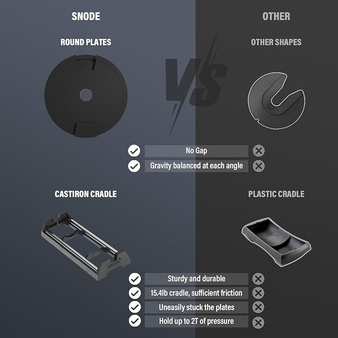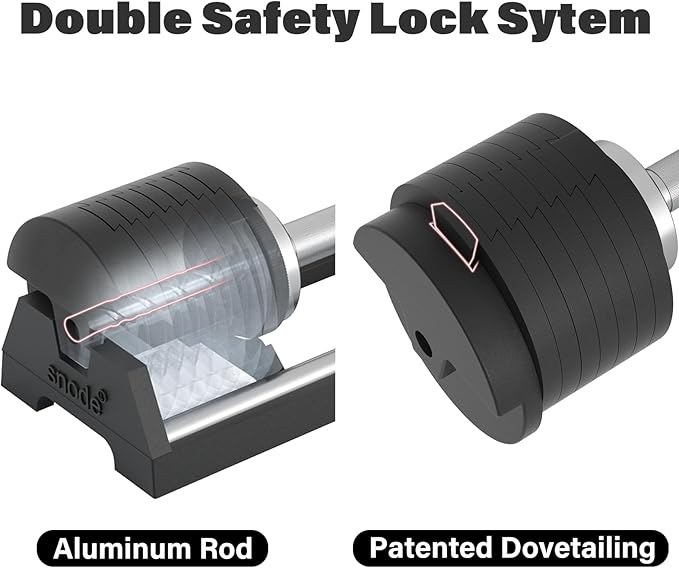• 【Unique Structure】The grip and the first plate are integrated to ensure that the handle does not shake/rattle. How we make it drop-Proof: When dropping, the stress-bearing is always on the first plate which we already make it really durable. Also the dual design of the telescopic rod and dovetail groove ensures the plates won't fall off during workout.