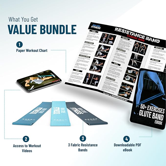 • GREAT VALUE: These blue leg bands for working out women come with a paper workout chart, a full workout ebook, and access to workout videos to demonstrate how to effectively use them in various ways.