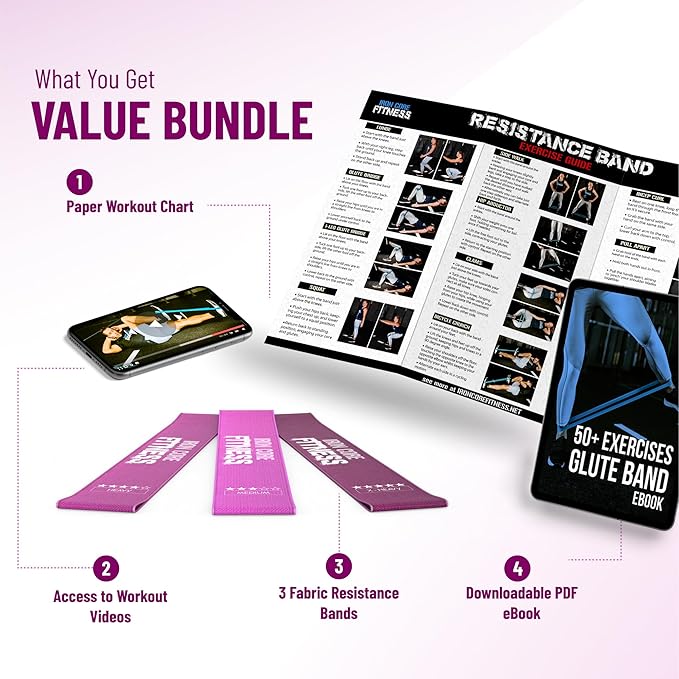• Great Value: These pink colored hip resistance bands come with a paper workout chart, a full workout ebook, and access to workout videos to demonstrate how to effectively use them in various ways.