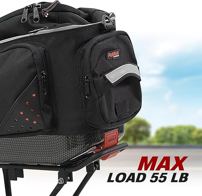 • Adjustable design fits most bike frames and accommodates various bag sizes
