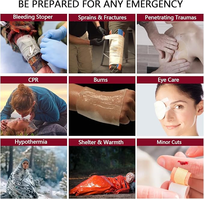 • First Aid Suppiles for Comprehensive Usability:This is a Premium first aid kit with advanced accessories upgraded by a professional team. Helps with emergency needs outdoors, home, or in the car, such as camping, hiking, or during hurricanes and tornadoes