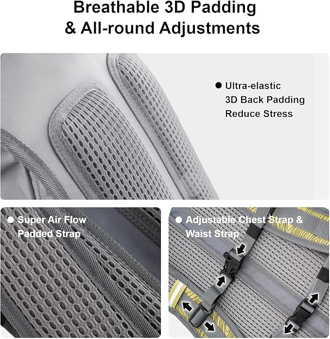 • HIKING/CYCLING/RUNNING/SKIING WITH EASE: This 2 lbs lightweight water backpack features an ultra-elastic 3D breathable padded back, adjustable chest and waist straps to provide comfort and stability for all body sizes. This day pack has got you covered for all your adventures.